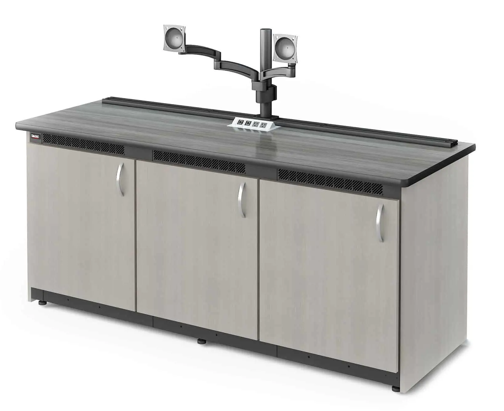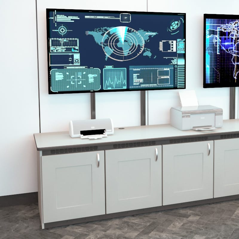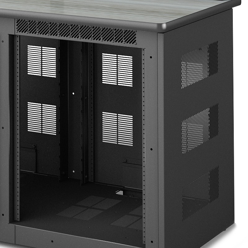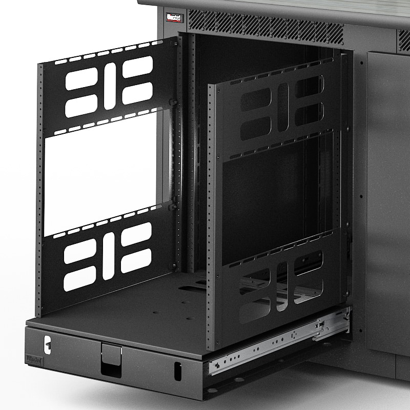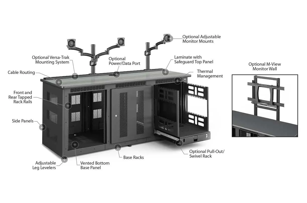 Paramount credenzas deliver modular, rack-ready infrastructure with bulletproof engineering for boardrooms, conference rooms, control rooms, and security operations. Built on welded EIA-standard 19″ base units with 14U of front and rear tapped rack space per bay, these expandable workstations feature integrated thermal management, premium work surface options, and Winsted’s exclusive Versa-Trak monitor mounting system. One, two, or three-bay configurations combine seamlessly to create larger solutions that grow with your technology demands.