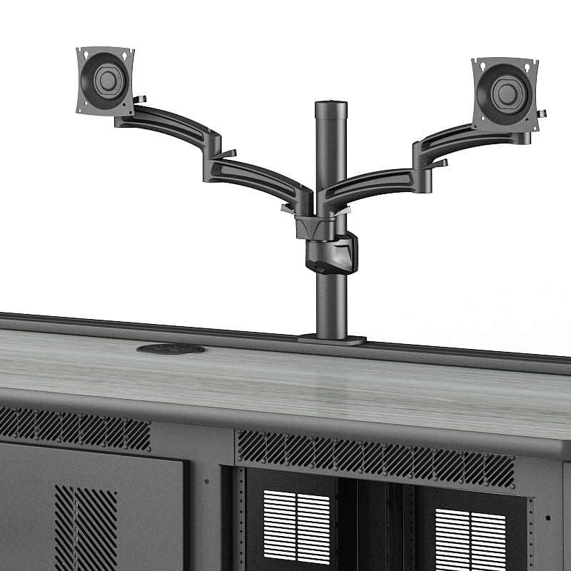 VESA-compliant pivot/tilt mounts easily attach monitors and provide smooth pivot and pitch adjustment for optimal viewing angles and ergonomic sightlines.